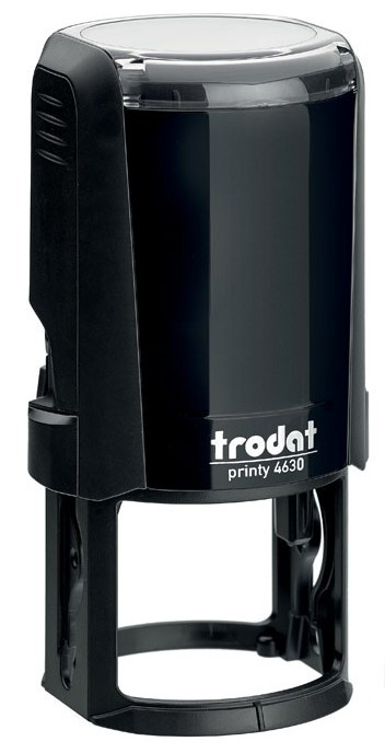 Plastová okrúhla samofarbiaca pečiatka. Veľkosť kruhového odtlačku: až D=30 mm. Možné farby odtlačku: čierna, modrá, červená, zelená a fialová. Náhradný vankúšik: 6/46030